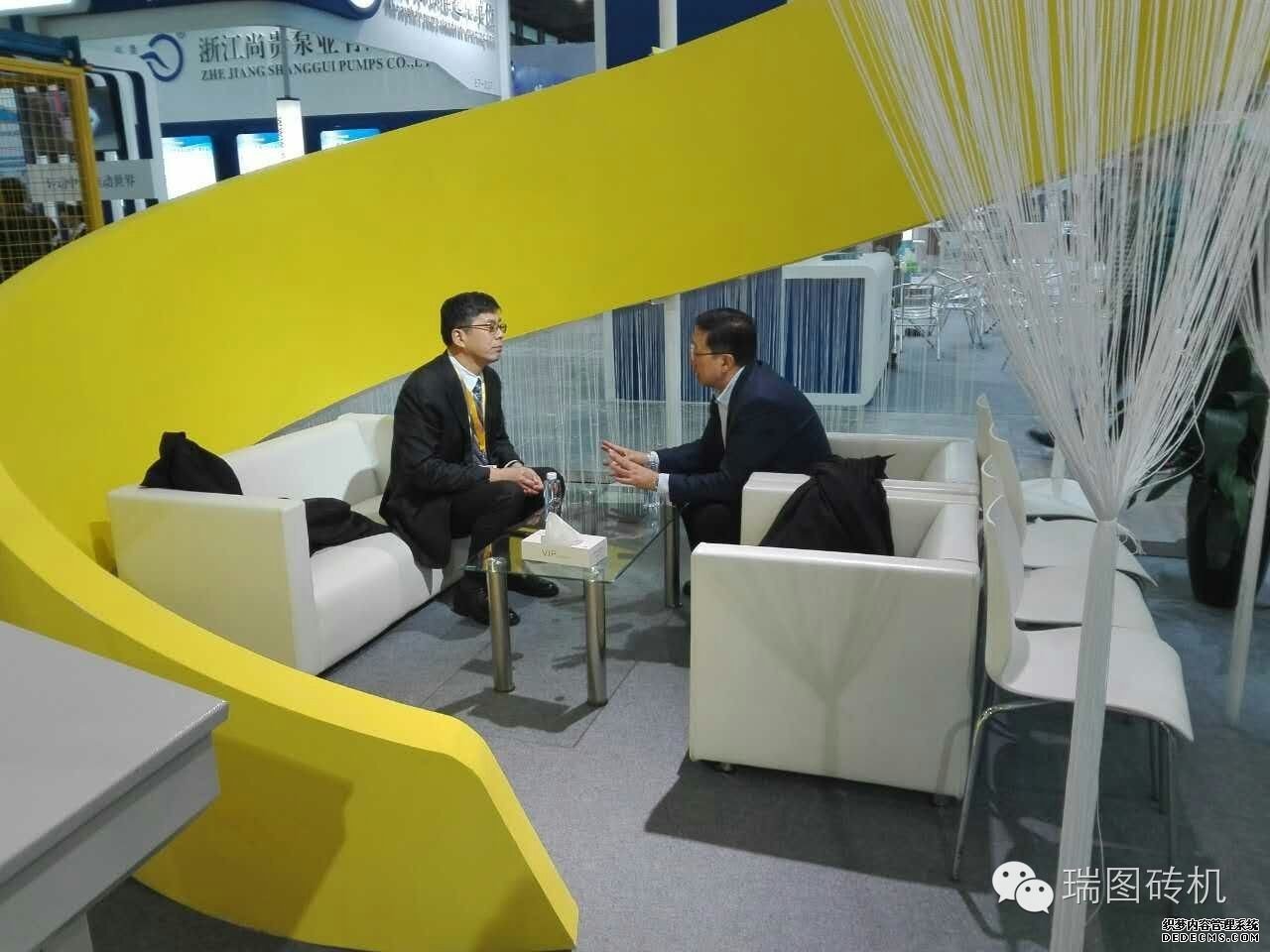 集团公司执行总裁戴广峰,并与公司参展人员一起向客户介绍瑞图2016年在砌块成型机方面取得的最新科研成果。