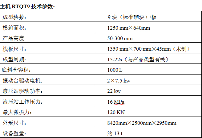 RT9CU型自动砌块生产线,是瑞图企业集团的经典设备之一。该设备配置是在国外台振成型机基础上结合国内市场而研制开发的,其控制系统属国内先进水平,其性能及技术指标和国内外同等设备相比有一定的优势。